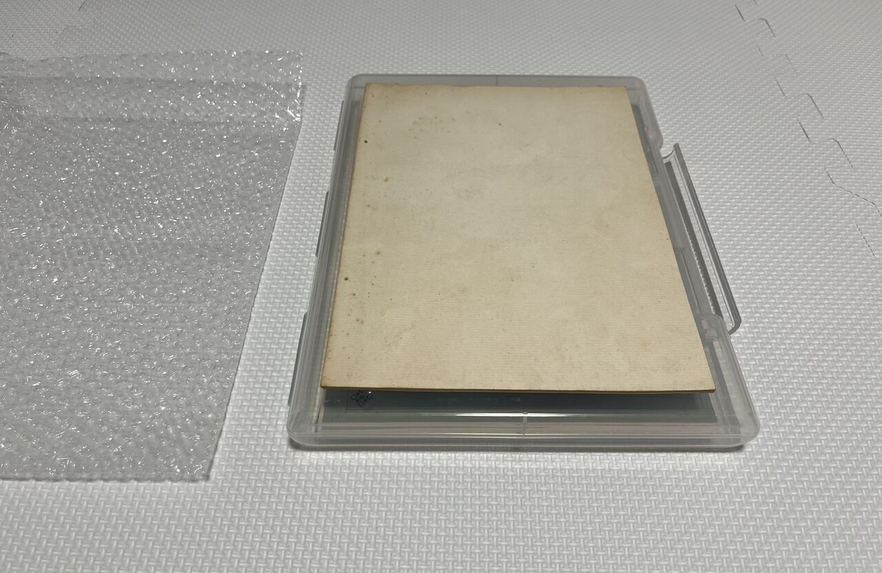 試作台本は、硬い厚紙に挟まれた状態で(折れや直射日光による変色防止と思われる)、プラスチックケース内に入れてあり、出品者の方が大変厳重に扱ってくださっていたことがうかがえます。